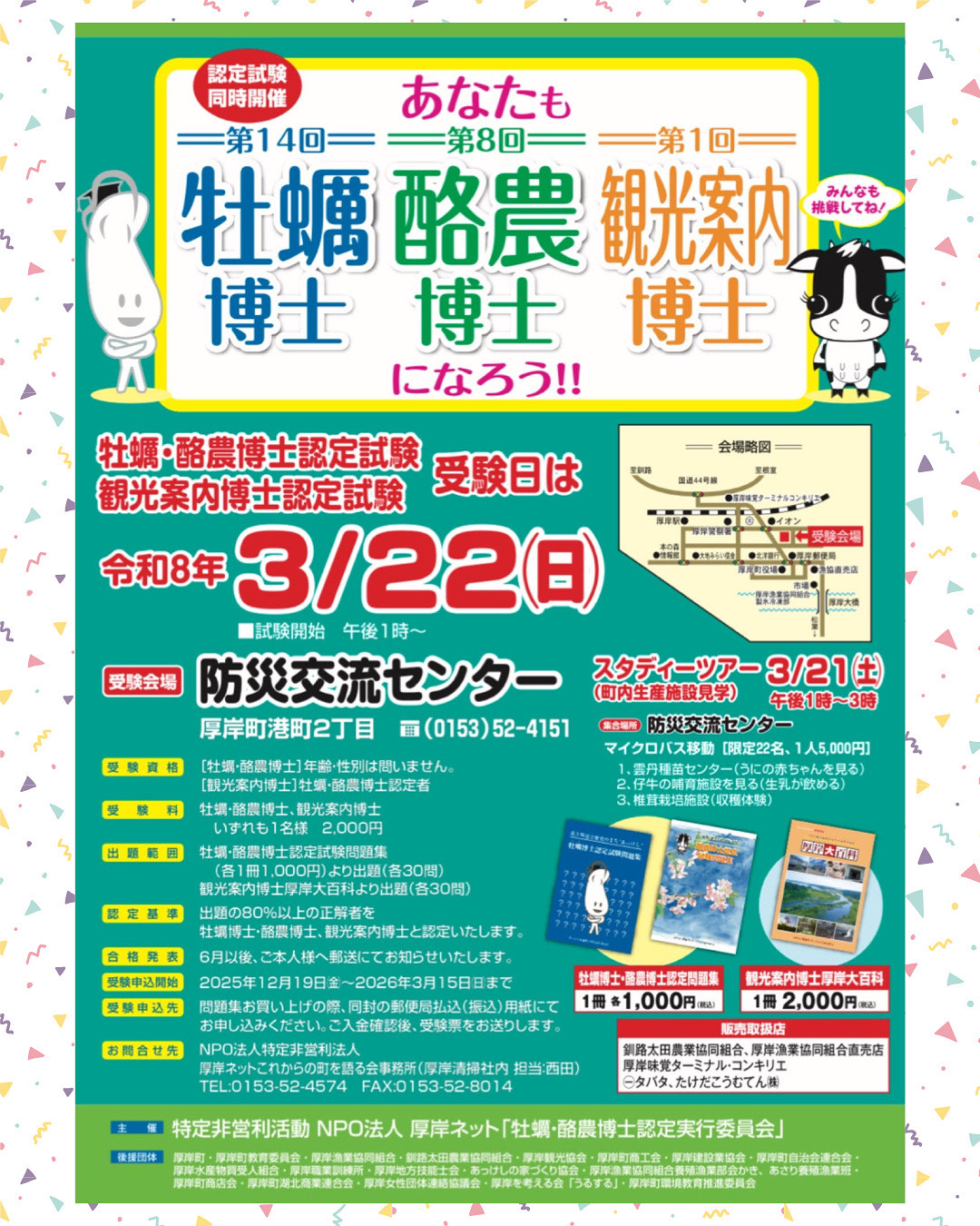 「牡蠣博士」、「酪農博士」、「観光案内博士」の受験者を募集しています!